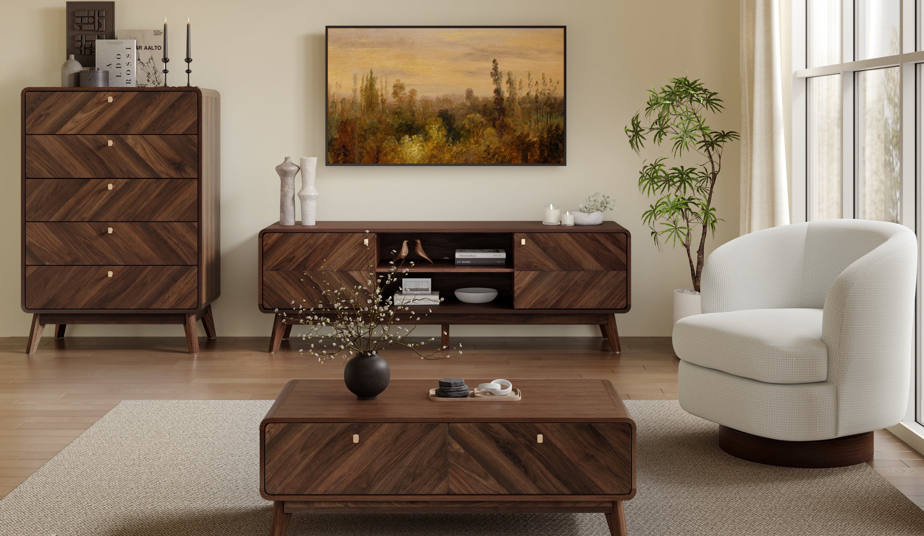 Klare Formen, dunkle Holztöne und massive Beine – die Theo-Serie vereint all das, was den legendären Mid-Century-Modern-Stil ausmacht, und ist unsere Hommage an dieses zeitlose Design.